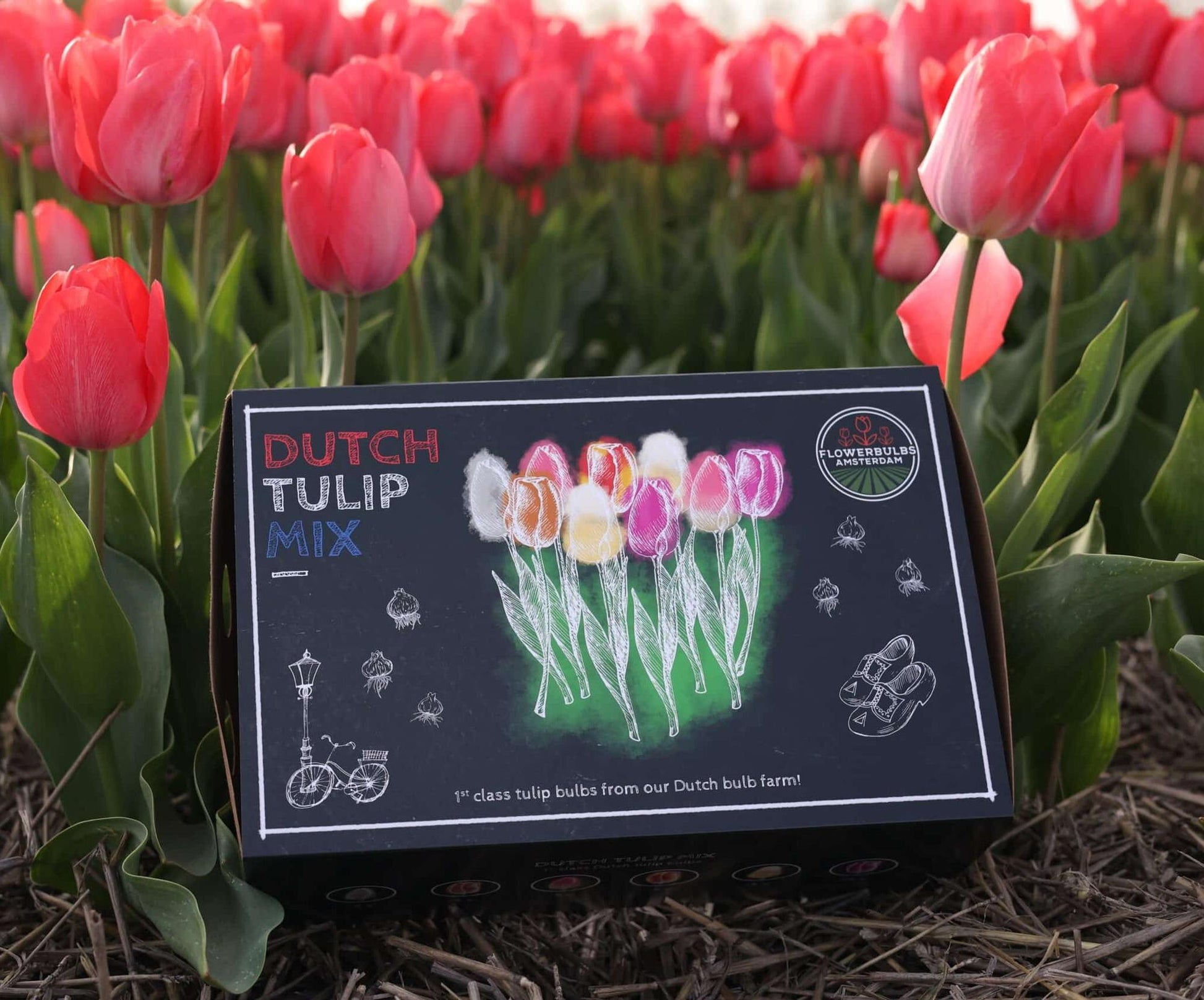 Flowerbulbs Amsterdam - Dutch Tulip Mix - Luxe box large, 90 bloembollen voor 2,5 m2 bloemenpracht - Maat 12+