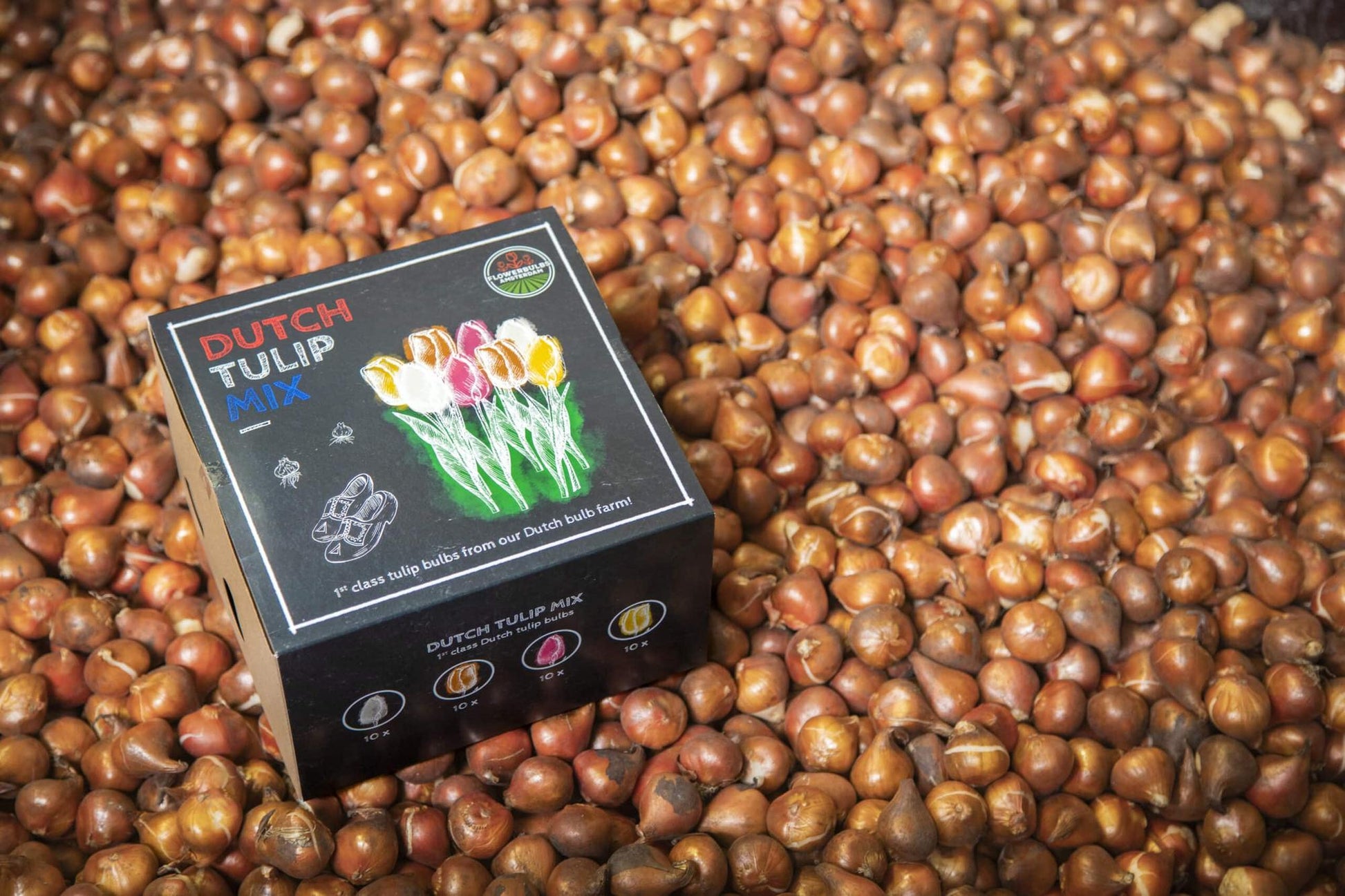 Flowerbulbs Amsterdam - Dutch Tulip Mix - Luxe box medium, 40 bloembollen voor 1 m2 bloemenpracht - Maat 12+