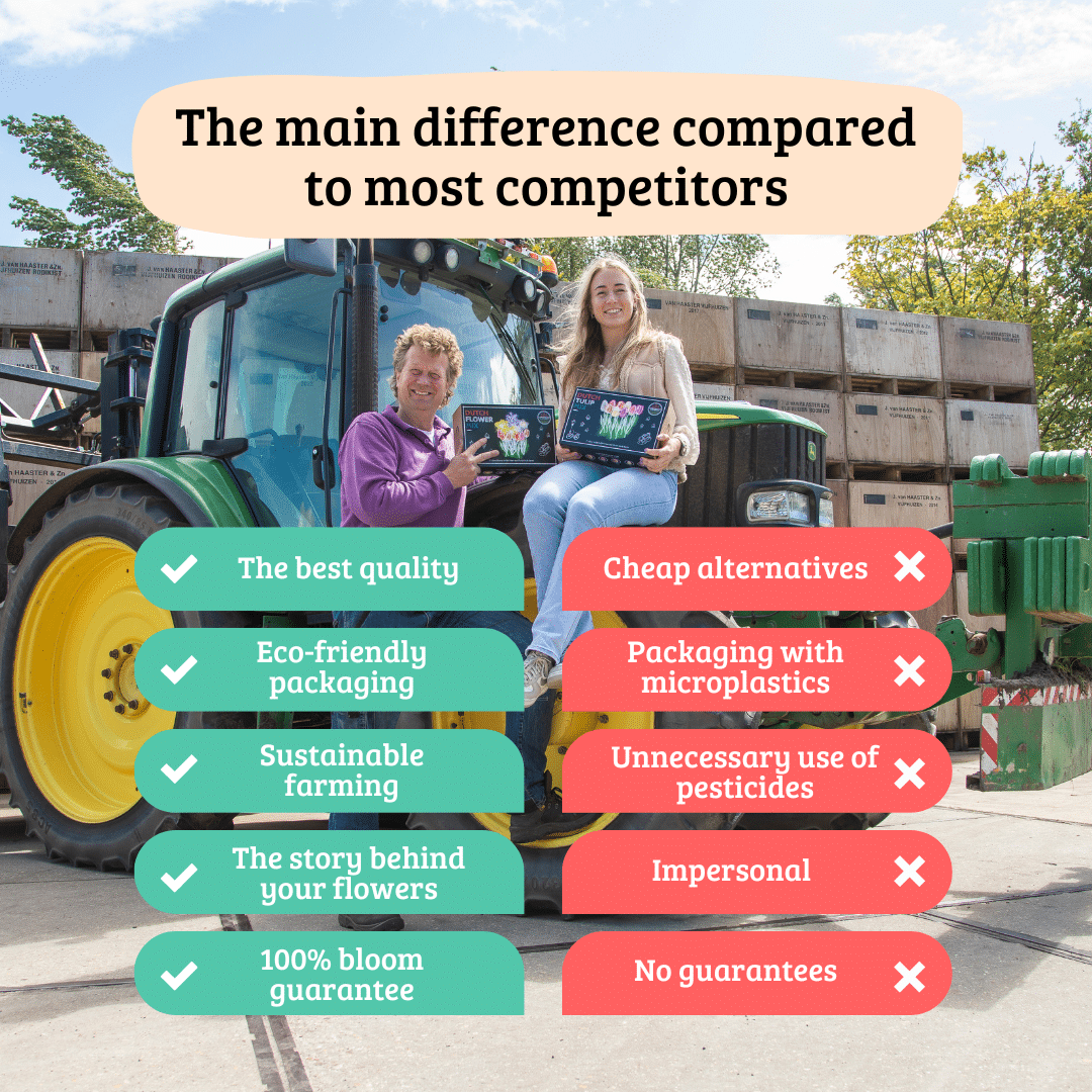 - Meer dan alleen bloembollen: elke bestelling wordt geleverd met een inspirerend verhaal over ons bedrijf en onze toewijding aan zowel botanische schoonheid als ecologische verantwoordelijkheid.