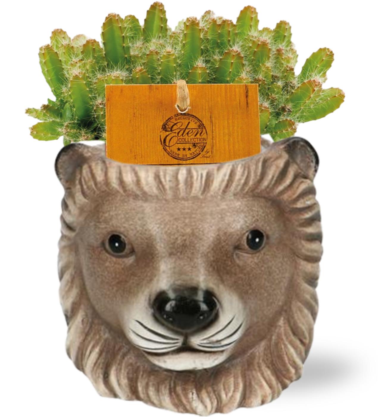 Hylocereus Undatus - Ø11cm - ↕15cm + Planter Leeuw D11/13x10cm - Bruin