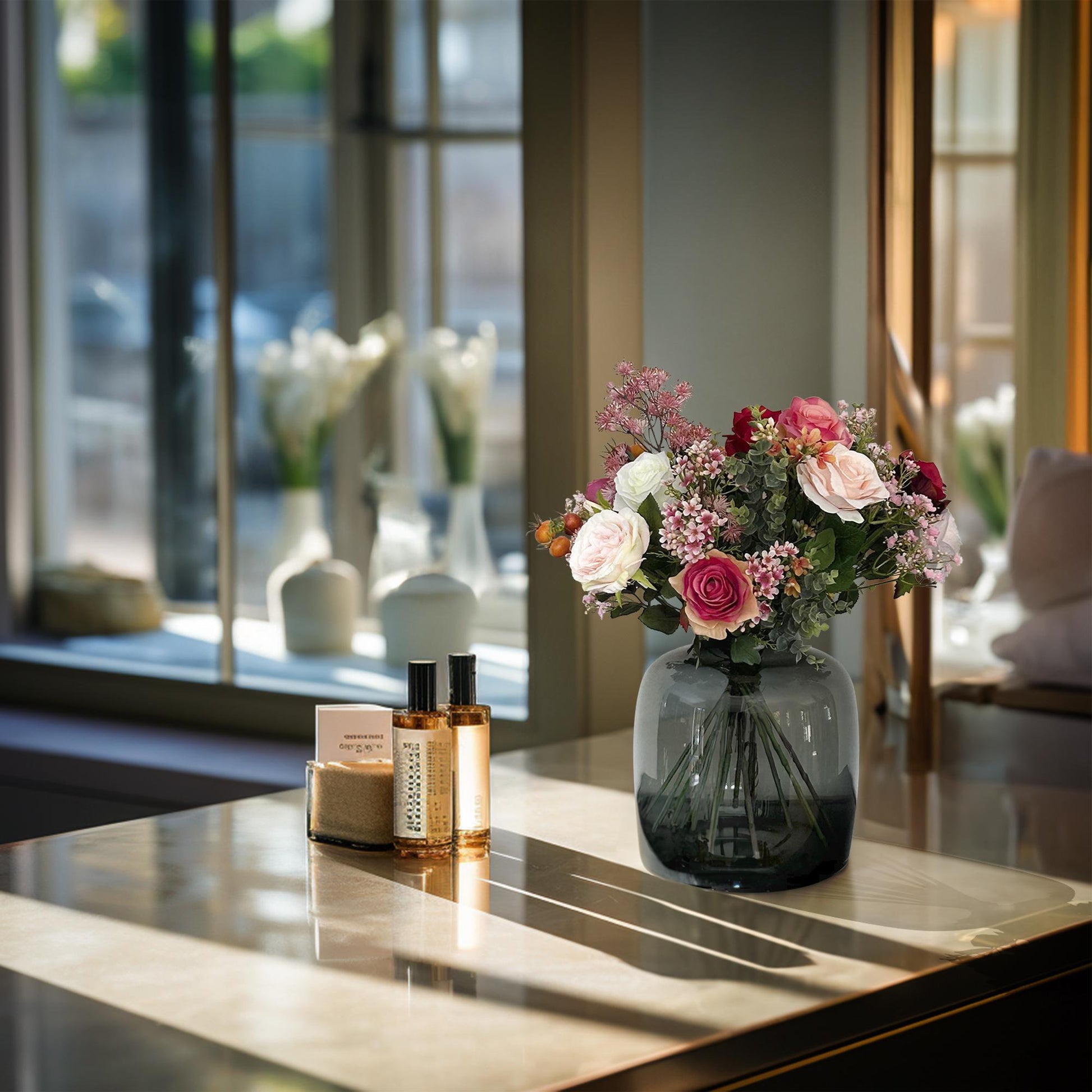 Kunstboeket Flame Roses voegt een sprankje kleur toe aan een eigentijdse ruimte of gaat naadloos op in een meer traditionele omgeving. Wordt het hele jaar blij van deze tijdloze bos kunstbloemen.