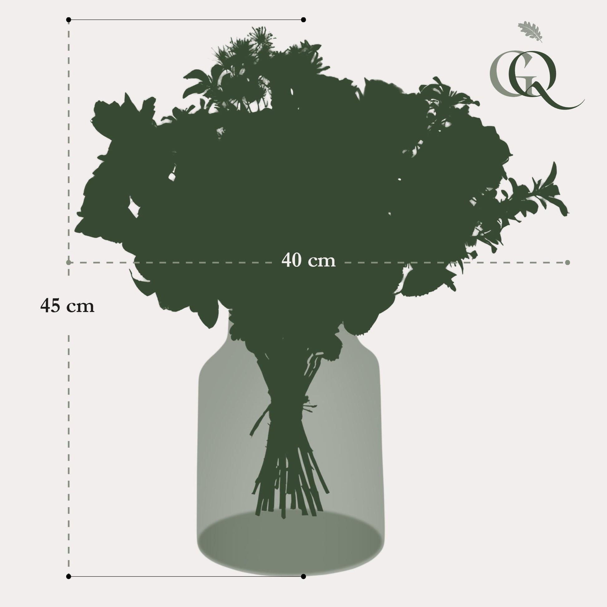 De levendig gekleurde rozen zijn niet van echt te onderscheiden en vormen het middelpunt van deze bos. Plaats dit schitterende boeket kunstrozen op een eettafel, schoorsteenmantel of dressoir en creëer zo een elegante blikvanger in je kamer.